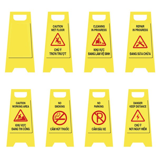- Biển cảnh báo bằng nhựa hình chữ A là sản phẩm chuyên dụng để cảnh báo khu vực sàn ướt nhằm đảm bảo an toàn cho mọi người đi lại khu vực quanh sàn ướt.