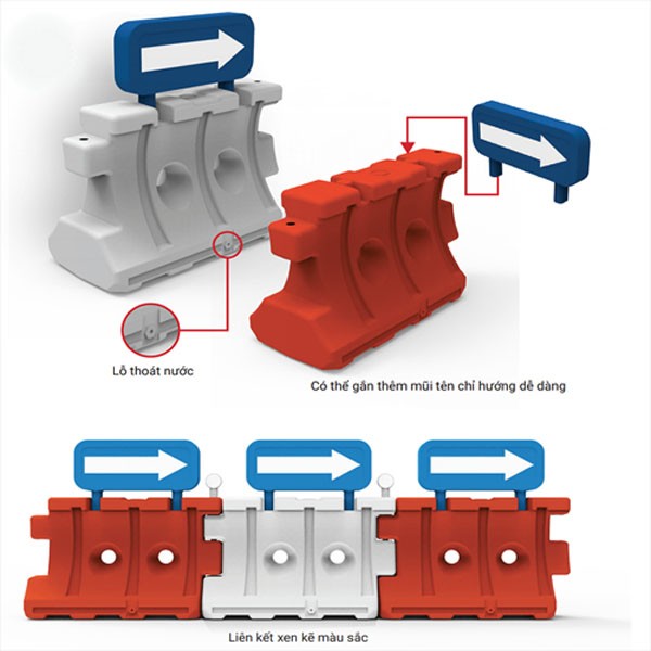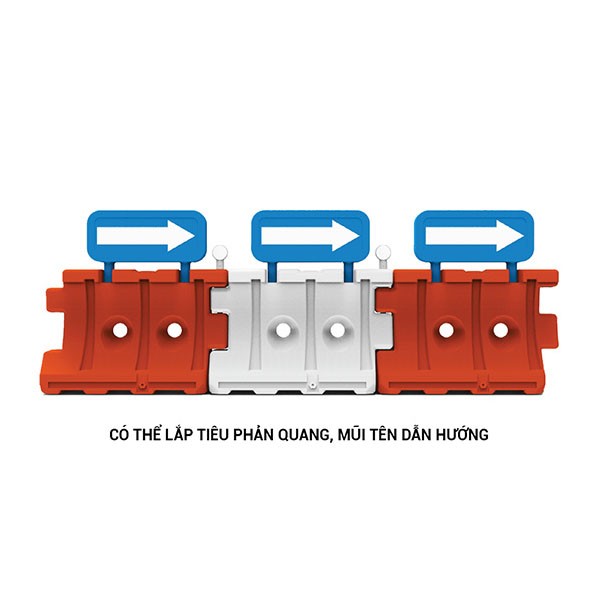 - Nhựa HDPE có ưu điểm độ bền dẻo, độ bền kéo tốt giúp hấp thu lực tác động, nhựa sẽ bị vặn xoắn, giảm thiệt hại tối đa lên phương tiện và người điều khiển phương tiện. Mũi tên chỉ hướng có khả năng phản quang giúp lái xe thuận tiện theo dõi khi trời tối.