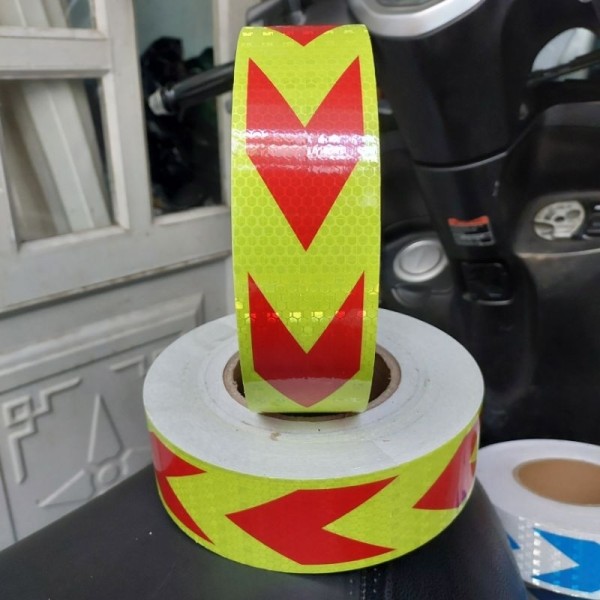 Cuộn dán Phản Quang vàng chanh mũi tên đỏ