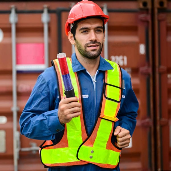 Gậy chỉ huy được sản xuất từ chất liệu nhựa tổng hợp. Gậy chỉ huy có chuôi màu đen và thân màu xanh đỏ. Sử dụng pin đại và có đèn phát sáng trong đêm. Sản phẩm sử dụng cho lực lượng bảo vệ, bảo an; điều khiển giao thông.