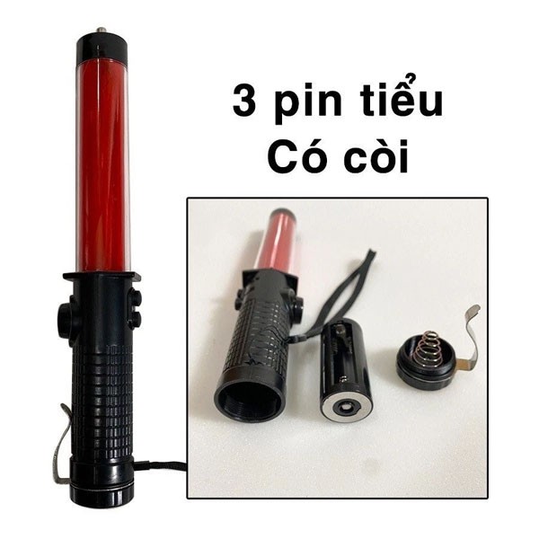 Gậy chỉ huy được sản xuất từ chất liệu nhựa tổng hợp. Gậy chỉ huy có chuôi màu đen và thân màu đỏ. Sử dụng pin đại và có đèn phát sáng trong đêm. Sản phẩm sử dụng cho lực lượng bảo vệ, bảo an; điều khiển giao thông. Rất thuận tiện sử dụng trong môi trường trời tối hoặc thiếu ánh sáng. Tay cầm gắn dây để đeo vào thắt lưng.
