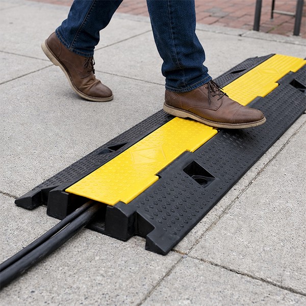 - Gờ cao su bảo vệ dây ngầm được làm từ cao su tổng hợp, với lắp nắp nhựa PVC giúp bảo vệ đường dây ngầm tại các sự kiện, công trình công cộng khỏi phương tiện giao thông, người đi bộ