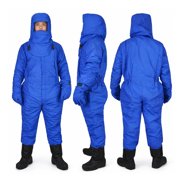 - Bộ sản phẩm gồm liền quần, mũ trùm đầu, găng tay và ủng. Được làm bằng vật liệu composite nhiều lớp và được chế tọa cẩn thận qua hàng chục quy trình. Vật liệu composite bên ngoài bao gồm ba lớp khác nhau, hai trong số đó là các lớp mỏng làm bằng vật liệu cách điện. Các cạnh của hai lớp mỏng liên kết với nhau, do đó giữ lại một lượng lớn không khí cách nhiệt mà không cần thêm trọng lượng, hoặc khối lượng và lớp trong có khả năng chịu nhiệt cao do đó có thể chịu được nhiệt độ từ âm 250 độ C đến 148 độ C. Sử dụng nơi nhiệt độ thấp, phòng lạnh, đá khô, nghiên cứu, công nghiệp, hàng không, vũ trụ, chế biến thực phẩm đông lạnh và bất kỳ phòng lạnh khác.