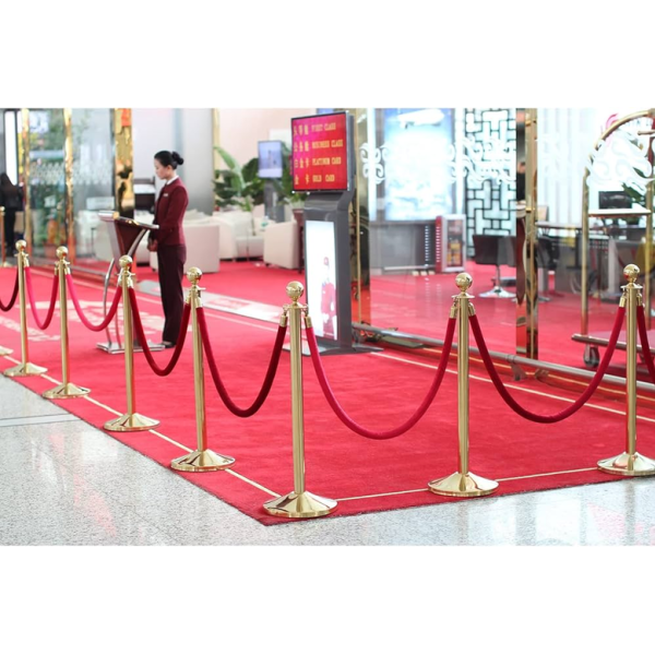 Cột phân cách dây nhung giúp tạo hàng chờ gọn gàng, phân luồng người hiệu quả trong các sự kiện, sảnh đón khách hoặc khu vực check-in đông người.