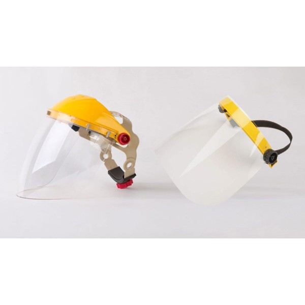 - Phần kính che mặt: làm từ nhựa trong suốt (PC/PET), che phủ toàn bộ khuôn mặt phía trước