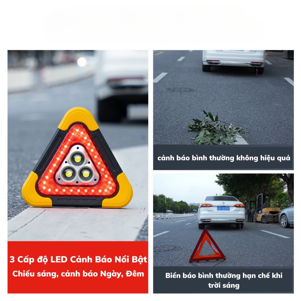 Đèn LED Cảnh Báo Khẩn Cấp Hình Tam Giác Nhỏ Gọn Với 4 Chế Độ Sáng Phạm Vi Lớn Kiêm Nguồn Điện Dự Phòng Sạc Năng Lượng Mặt Trời