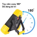 - Kiểu dáng: Hình tam giác, có quay đeo cầm tay có thể gấp gọn quai. Đèn thiết kế với 3 bóng COB trung tâm siêu sáng và 42 bóng LED đỏ xung quanh giúp ánh sáng lan tỏa đều cho cả vùng ánh sáng rộng