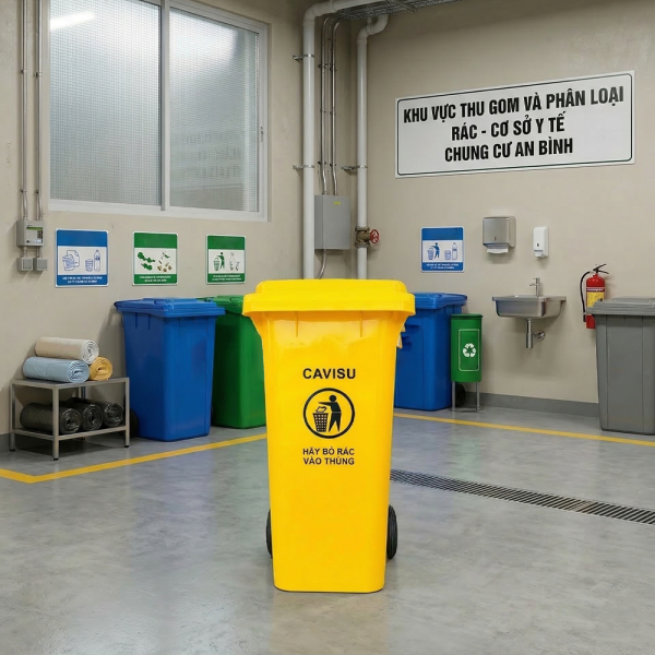 Thùng Rác Nhập Khẩu CAVISU 120 Lít Màu Vàng: Giải Pháp Phân Loại Rác Chuẩn Y Tế Và Công Nghiệp
