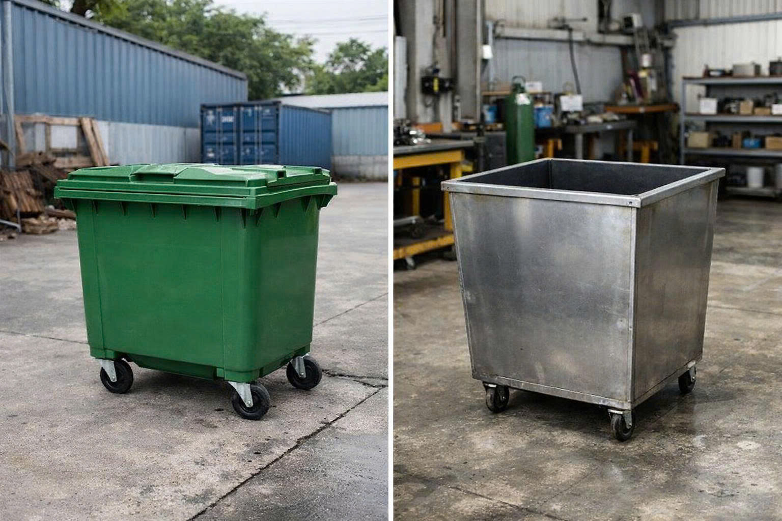 So sánh thùng rác nhựa và thùng rác kim loại trong môi trường công nghiệp
