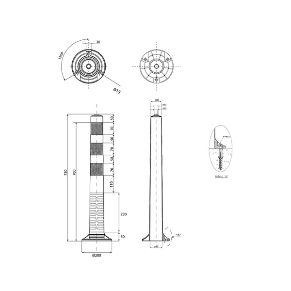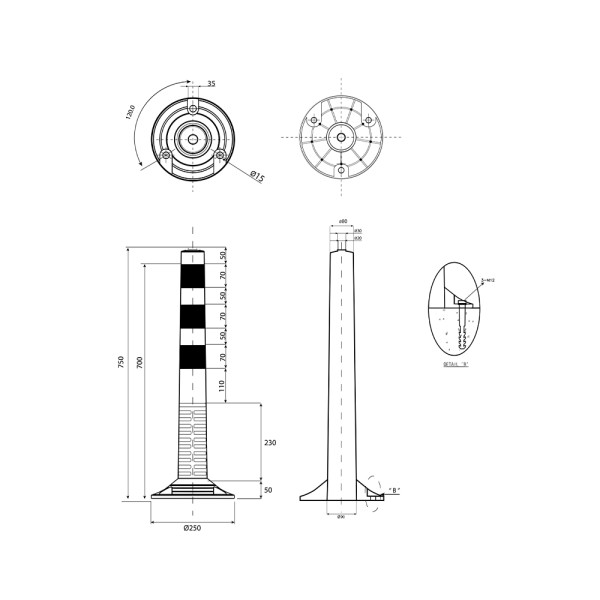 Đế tròn kích thước lớn giúp cọc đứng vững, hạn chế đổ ngã khi có gió hoặc tác động nhẹ.