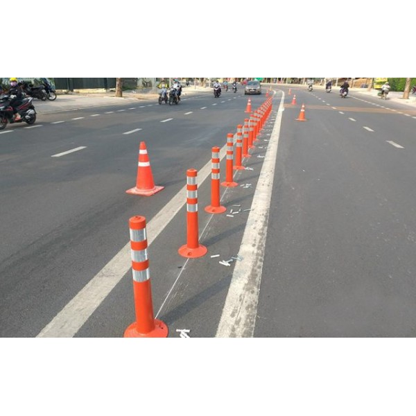Ứng dụng thực tế Cọc Tiêu nhựa TPU phân làn giao thông phản quang 75cm Nhật Quang