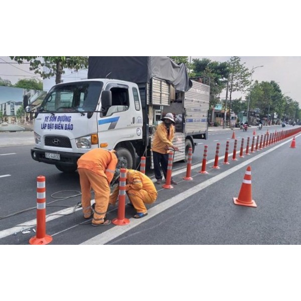 Nhật Quang luôn sẵn sàng tư vấn giải pháp phù hợp theo từng nhu cầu sử dụng thực tế Cọc Tiêu nhựa TPU phân làn giao thông phản quang Hàn Quốc 75cm.