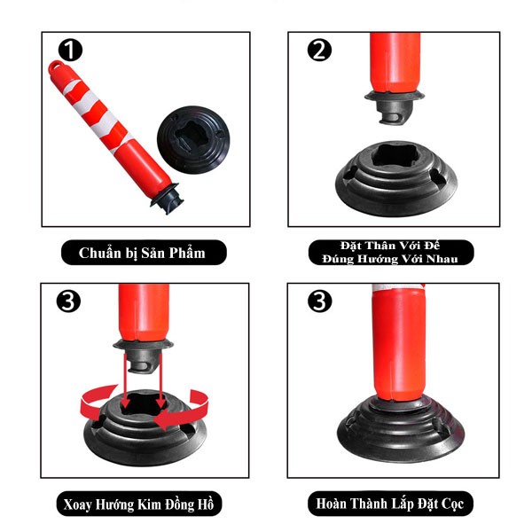 Đặt cọc trên nền phẳng; nếu cần độ vững cao, bắt bu lông qua lỗ chân đế hoặc thêm trọng tải theo hướng dẫn.